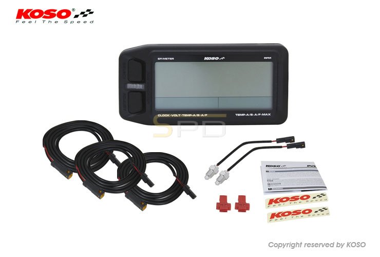 A Koso legújabb fejlesztése. Kis mérete ellenére rendkívüli tudással rendelkezik. Grafikus és numerikus fordulatszám kijelzéssel is rendelkezik. Nagyméretű LCD kijelzőjének köszönhetően, gyorsan és pontosan leolvashatók a megjelenített adatok. Az LCD több szegmensre van osztva a könnyebb érthetőség érdekében.