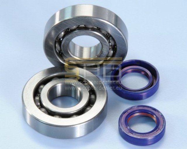 Polini High-Speed Kit magas minőségű főtengelycsapágy és szimeringszett Minarelli - Piaggio motoros robogókhoz, robogó tuning alkatrész. A szett tartalma két darab magas minőségű NTN gyártmányú mélyhornyú gyolyóscsapágy és két darab csúcskategóriás Vitonos teflon ajkú szimering. Fémkosaras szegecselt kivitel, így a sajtolt kiviteleknél sokkal masszívabb, hosszabb élettartam jellemzi. A szett elsősorban tuningolt robogókhoz ajánlott, azonban tökéletes alternatíva lehet gyári motorokhoz is.