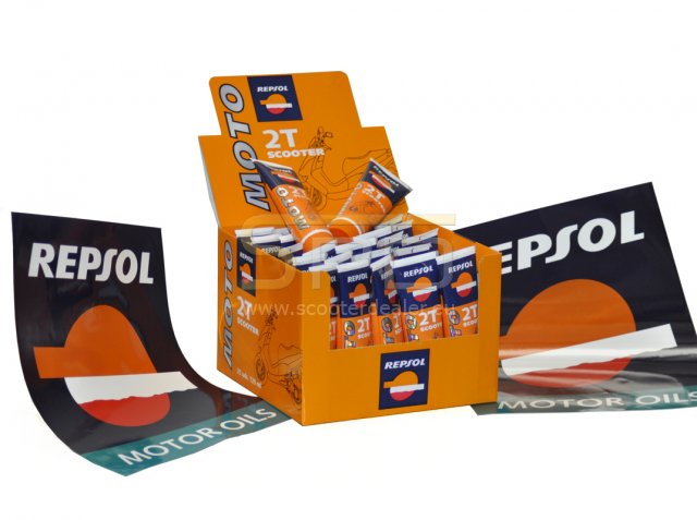 Minden a hétvégén leadott 5000 forint feletti megrendeléshez ajándékba adunk egy Repsol Scooter 2T 125ml-es robogós olajat, illetve egy nagyméretű (30x30-as) Repsol logos matricát.