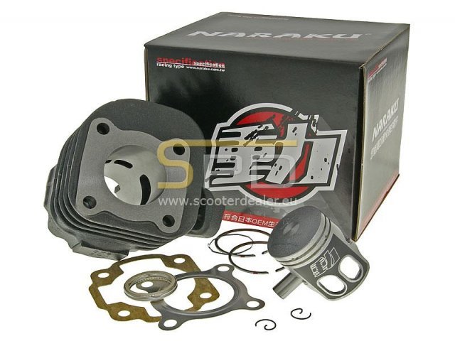Naraku Performance 50ccm-es öntöttvas hengerszett. Az alkatrész teljesítménye minimálisan magasabb (3-5%) a gyárilag felszerelt darabnál. Magas minőségének, illetve pontos megmunkálásnak, valamint a dugattyún található kifejezetten a bejáratáshoz kifejlesztett bevonatnak köszönhetően a legtöbb hengerrel ellentétben itt nem szükséges 4-500 kilométert járatni, hanem elegendő csupán 1-200 finoman megtett kilometer. A szett a hengerfejet leszámítva tartalmazza az összes olyan alkatrészt amelyre a felszerelés során szükségünk lehet. A gyári hengerfej természesen maximálisan megfelelő ehhez a szetthez is.