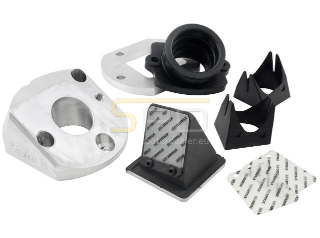 Kiesler Racing komplett szívórendszer (Spacer, membrán, szívócsonk). A 2009-es év egyik nagy újdonsága ez a komplett szívórendszer, amely a híres németországi robogó tuning alkatrész gyártó / tervező Kiesler tuning cégtől érkezik. A Német cég tesztjei szerint Minarelli motoros robogóknál nagyon gyakori eset, amikor magas fordulaton a membránlapok már nem egyszerre nyitnak és zárnak. Ennek köszönhetően bizonyos magas fordulatszám tartományokban a motor nem tudja a maximumot produkálni. A Kiesler azt állítja, hogy ezzel a szettel robogónk bármelyik szívórendszerhez képest plusz 0,5 Le-t, fog tudni leadni keréken, illetve azt, hogy a membránlapok egyszerre fognak nyílni, és zárni. A robogónk hasznos fordulatszám tartománya is növekszik.